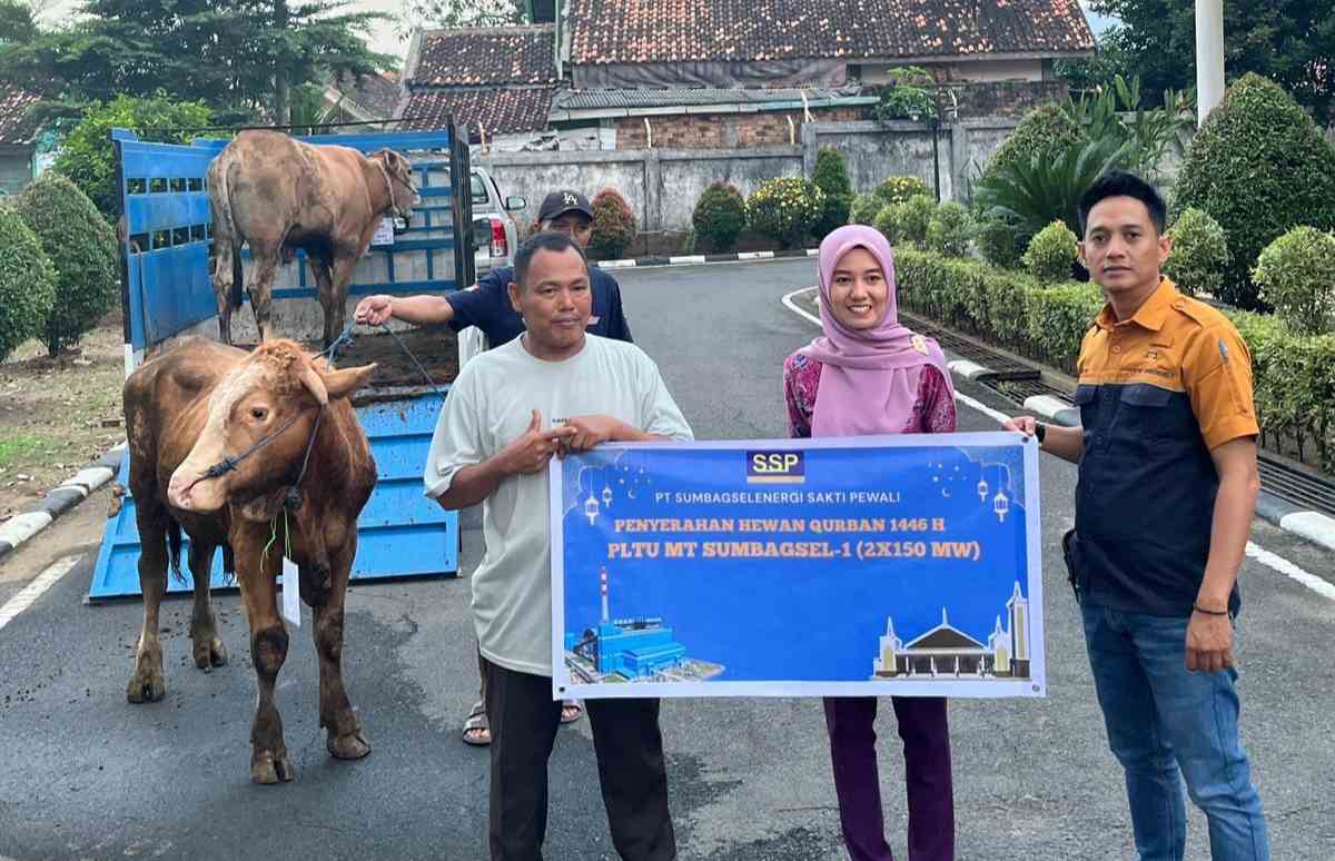 Lensa Mata Baturaja – PLTU MT Sumbagsel-1 Desa Keban Agung, Kecamatan Semidang Aji, Kabupaten OKU, Sumatera Selatan, membagikan belasan hewan kurban jenis Sapi dan Kambing untuk Hari Raya Idul Adha 1446 H.