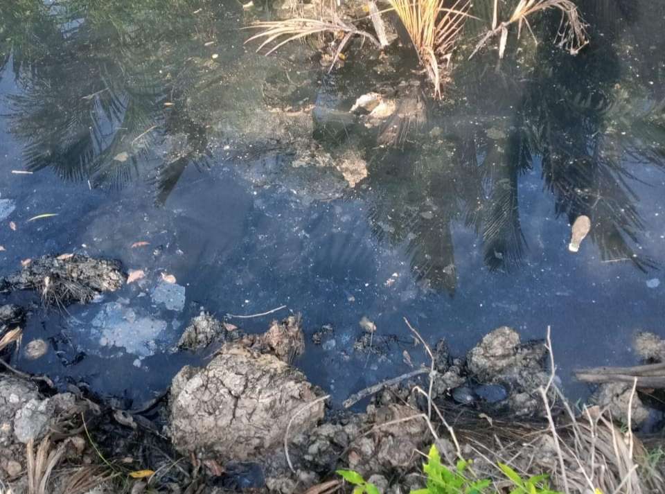 “PMK Sumber Waras diduga tidak ada sistem penampungan dan pengolahan limbahnya. Seenaknya dibuang hingga akibat limbah tersebut tumbuhan pada mati dan warna airnya terlihat hitam, lokasi Kel. Sungai Nibung, Kec. Tungkal Ilir Tanjabbar,” kata Udin sapaat akrabnya kepada Udin codet