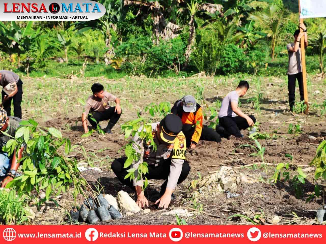 Lensa Mata Nias Selatan – Sebagai wujud sinergitas antara Polri dan Kementerian Koordinator Bidang Pembangunan Manusia dan Kebudayaan (Kemenko PMK), Polres Nias Selatan turut melaksanakan bakti sosial penananam pohon di lahan Naniyo, Desa Sondregeasi, Kecamatan Luahagundre Maniamolo, Nias Selatan, Sumut, Rabu, 15/11/2023.