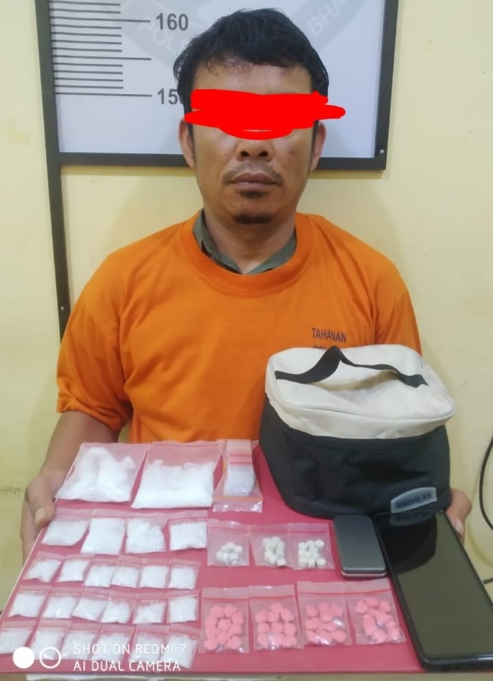 “Saat di lakukan penggeledahan di dalam rumah tersebut yang langsung di saksikan oleh terduga Pelaku petugas menemukan tas ukuran kecil merk Brivilas warna cream yang isinya terdapat 1 (satu) buah plastik klep transparan ukuran besar di dalamnya ada butiran kristal di duga narkotika golongan I jenis Sabu berat Kotor (bruto) : 38, 06 (tiga delapan koma nol enam) gram, 1 (satu) buah plastik Klep transparan ukuran besar di terdapat butiran kristal di duga narkotika golongan I jenis Sabu dengan berat Kotor (bruto) 34,51 (tiga puluh empat koma lima puluh satu) gram, 4 (empat) buah plastik klep transparan ukuran sedang terdapat butiran kristal di duga Narkotika golongan 1 jenis Sabu dengan total berat Kotor (bruto ) 19,18 (sembilan belas koma delapan belas) gram, 18 (delapan belas) buah plastik klep ukuran kecil di dalamnya terdapat butiran kristal di duga narkotika golongan I jenis Sabu dengan berat bruto (kotor) 18,10 (delapan belas koma sepuluh) gram, 4 (empat buah) plastik klep transparan ukuran sedang terdapat 10 (sepuluh) butir pil warna pink di duga narkotika golongan I jenis ekstasi berat Kotor (bruto) 16,53 (enam belas koma lima tiga) gram, 2 (dua) buah plastik klen transparan ukuran sedang terdapat 10 butir pil warna putih diduga narkotika golongan I jenis ekstasi berat bruto (kotor) 6,44 (enam koma empat puluh empat) gram dan 74 (tujuh puluh empat) plastik klep ukuran kecil kosong serta 1 (satu) unit timbangan digital ukuran kecil warna silver abu – abu,” ungkap Widodo.