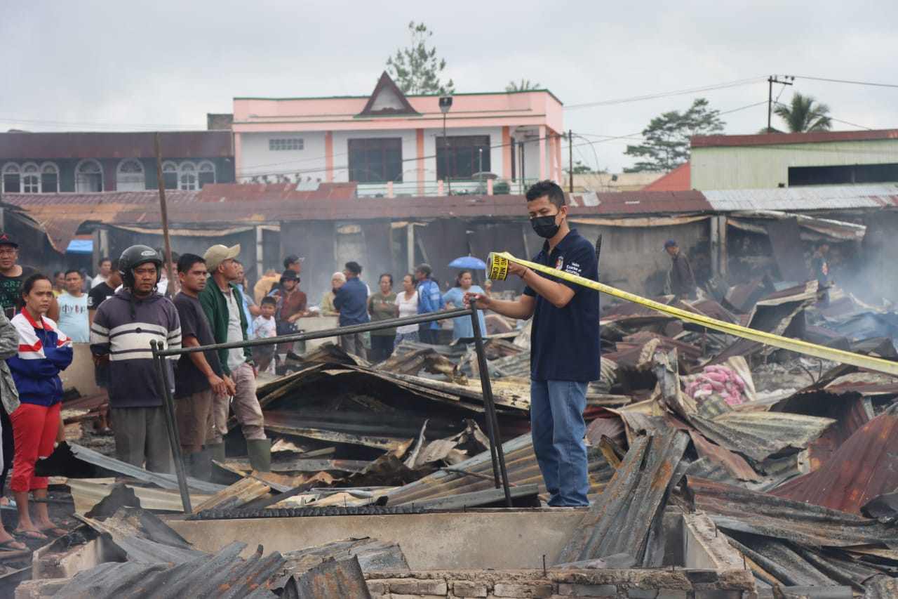 Lensa Mata Taput – Tim Inafis Polres Tapanuli Utara melakukan olah TKP kebakaran pasar Tarutung yang terjadi pada Minggu 7 April 2024, sekira pukul 21.30 WIB, di Desa Simamora Siwaluoppu, Kecamatan Tarutung, Taput.