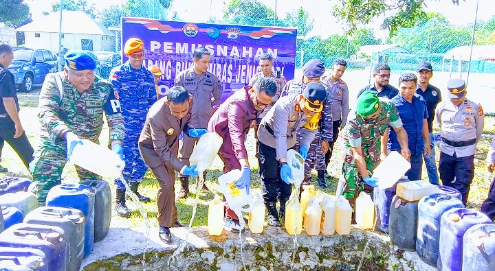 Pemusnahan ribuan liter miras tersebut turut dilakukan Kapolres Tual bersama. Pj .Wali kota dan Fokopimda Kota Tual serta Personil TNI-POLRI dengan menuangkan Miras dari berbagai kemasan ukuran kecil hingga ukuran besar kedalam lubang galian.
