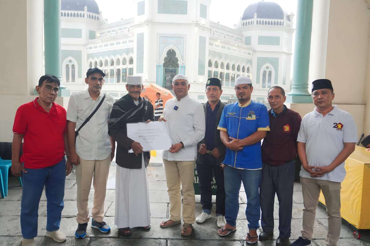 Beliau menyampaikan kepada BKM Mesjid Raya Medan agar menerima hewan Kurban yang merupakan titipan dari Bapak Prabowo untuk dibagikan kepada masyarakat sekitar mesjid Raya Al Mahsun Medan ucap Harun Mustafa Nasution yang juga Wakil ketua DPRD Sumut.