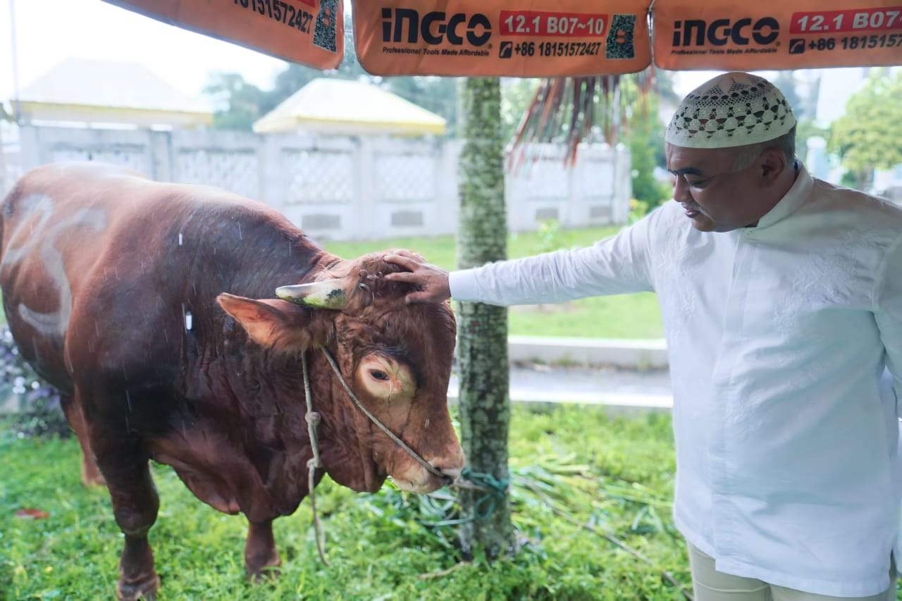 Lensa Mata Medan – DPD partai Gerindra Sumatera utara yang dikomandoi H. Gus Irawan Pasaribu, SE, Ak, MM, CA menyerahkan Hewan kurban titipan Presiden Terpilih 2024 H. Prabowo Subianto seberat 1 ton untuk disembelih di Mesjid Raya Medan pada Minggu (16/6), adapun jenis sapi yang diserahkan jenis limosin.