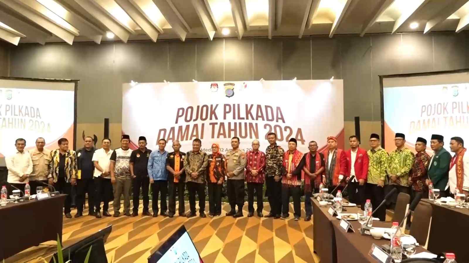 Diskusi yang dihadiri oleh Kepolisian Daerah (Polda) Sumut, Komisi Pemilihan Umum (KPU) Sumut, Badan Pengawas Pemilihan Umum (Bawaslu) Sumut serta sejumlah organisasi masyarakat dan keagamaan itu berthemakan ‘Pojok Pilkada Damai Tahun 2024’.