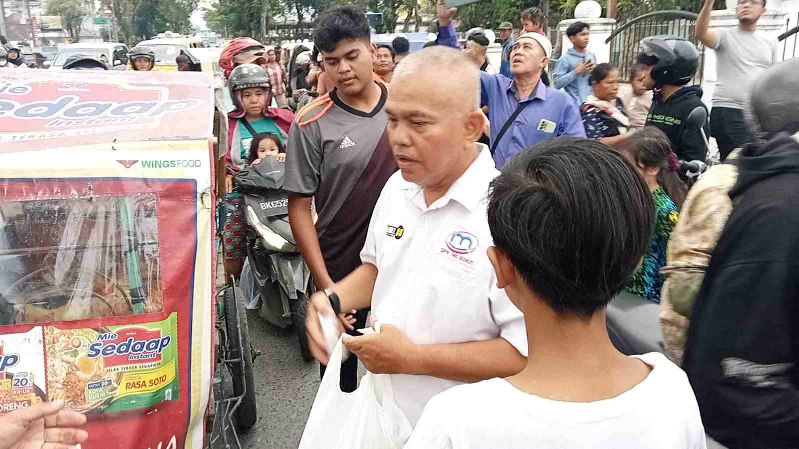 Lensa Mata Medan – Ketua DPW Ikatan Media Online (IMO) Sumatera Utara, HA. Nuar Erde, memimpin langsung kegiatan pembagian takjil yang berlangsung di depan Makam Pahlawan Jalan Sisingamangaraja, Medan, Jumat (28/3/2025) sore.
