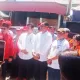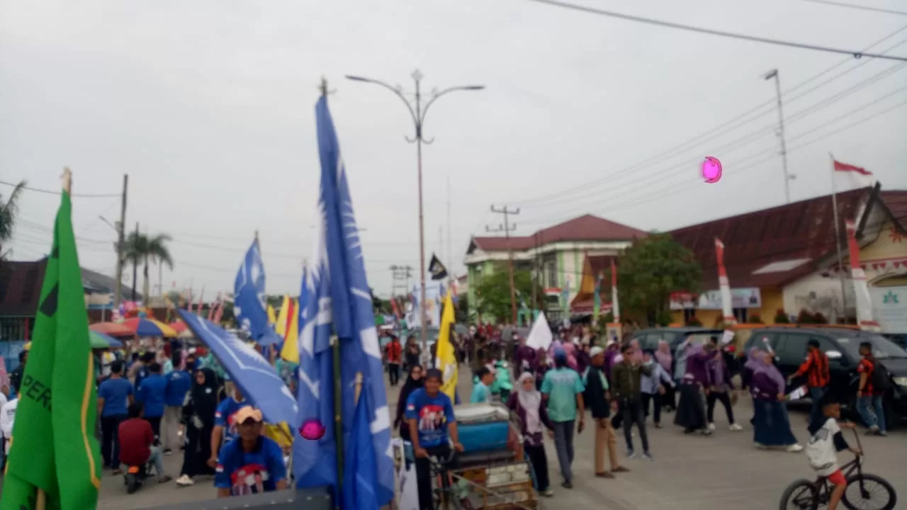 Setelah deklarasi koalisi partai, ratusan warga bersama bakal paslon, dan partai pengusung berjalan kaki menuju Kantor KPU Kabupaten tanjab barat yang berjarak sekitar 600 meter.