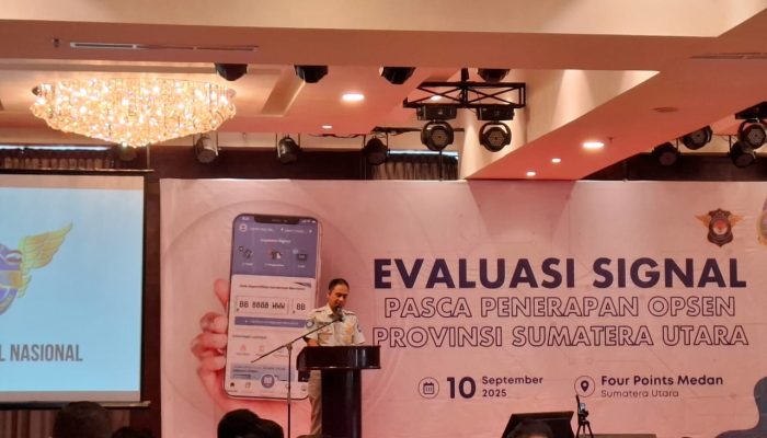 Lensa Mata.id Tanjungbalai – Bertempat di Ballroom Hotel Four Points by Sheraton Medan, Sat Lantas Polres Tanjungbalai menghadiri kegiatan Evaluasi Signal Pasca Penerapan Opsen Provinsi Sumatera Utara, Rabu (10/9/25).