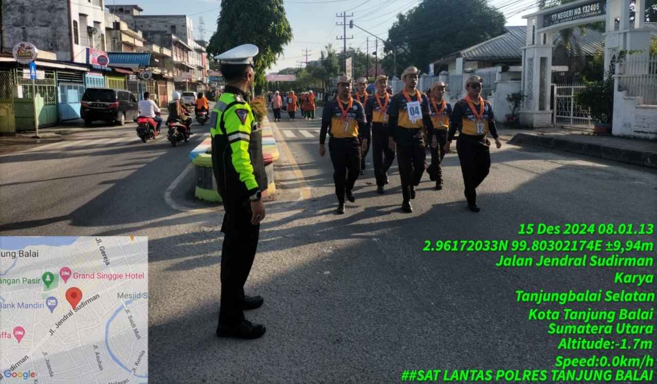 Lensa Mata Tanjungbalai – Sat Lantas Polres Tanjungbalai melaksanakan Pengamanan, Penjagaan dan Pengaturan Arus Lalu Lintas, dalam Rangka Kegiatan lomba gerak jalan beregu HUT ke 79 PGRI dan HGN tahun 2024.