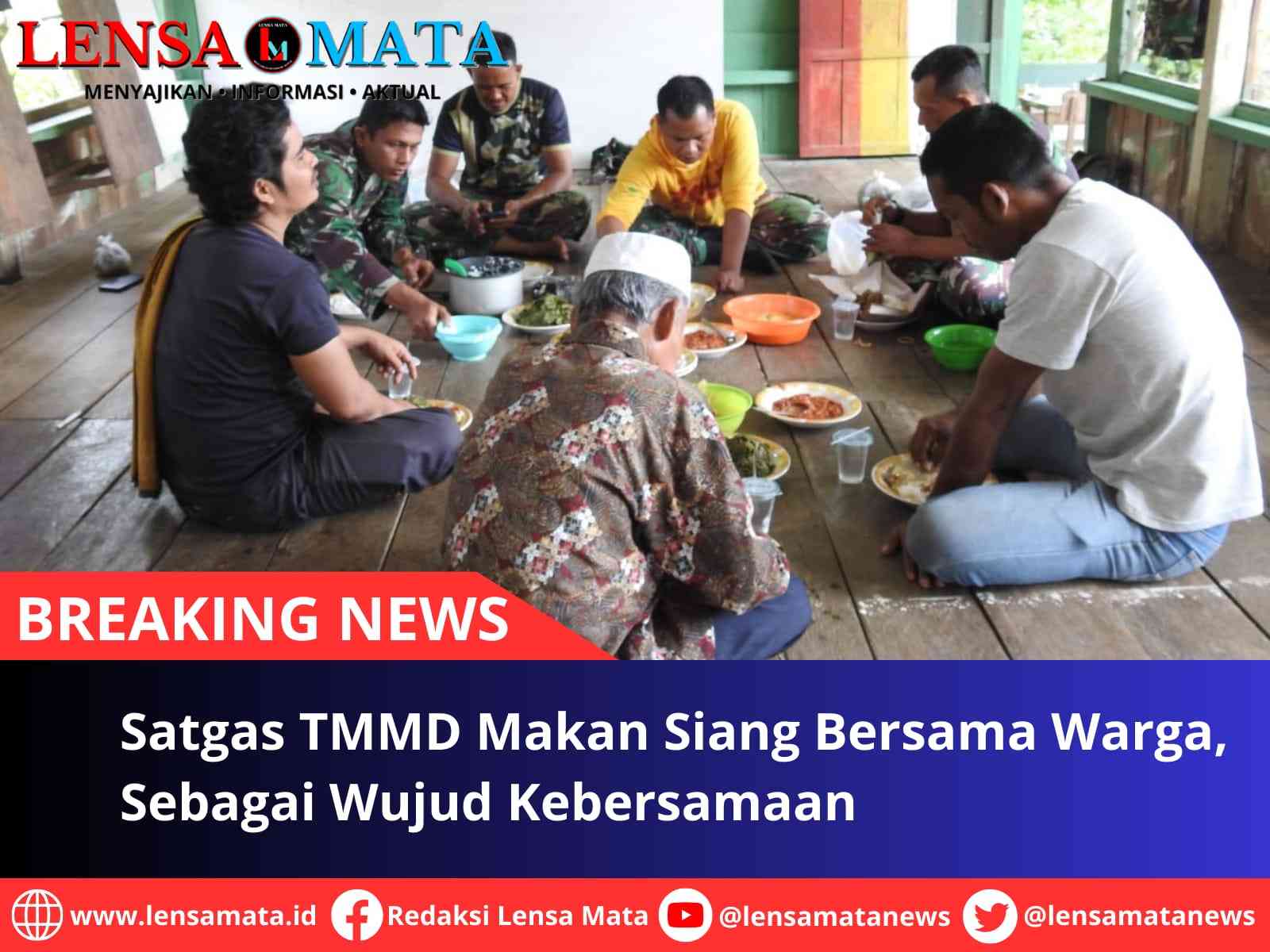 Salah satu penerima rehab RTLH yang bernama Jasman mengajak anggota TNI yg mengerjakan RTLH diumahnya untuk makan siang bersama.