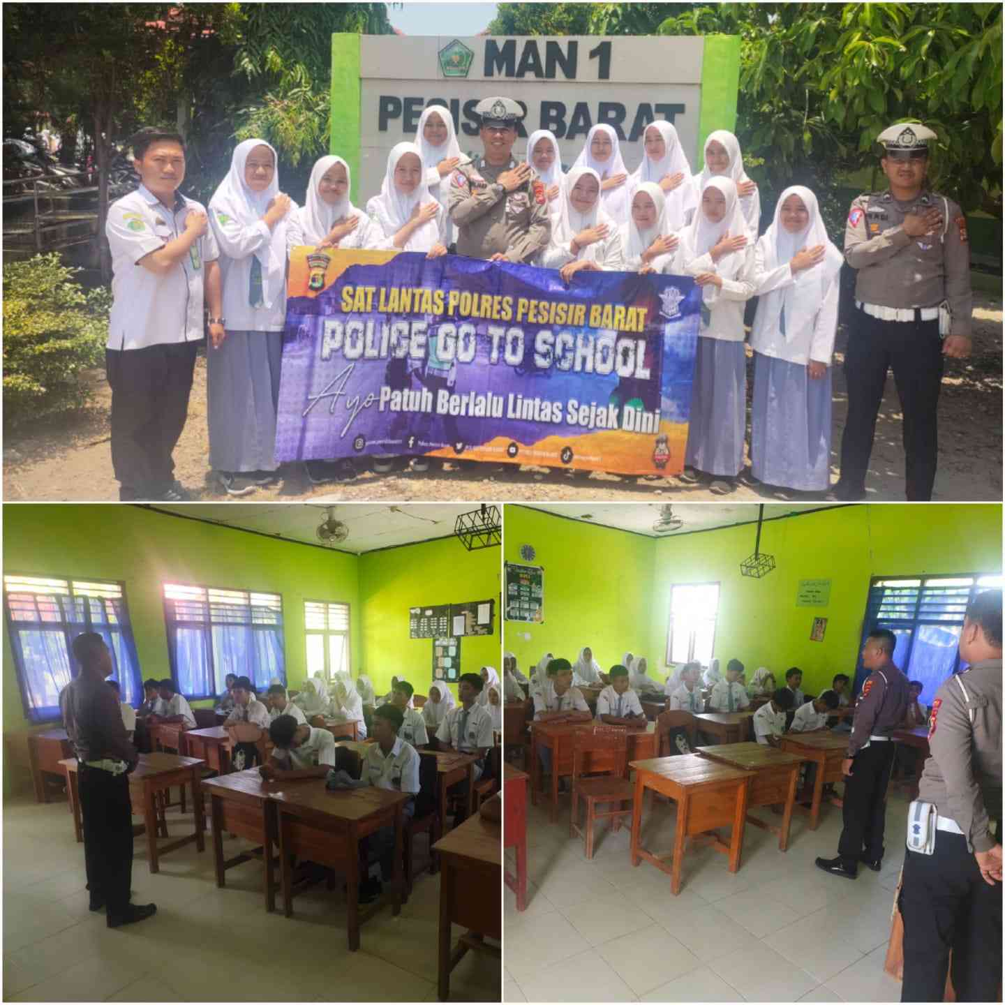 Lensa Mata Pesisir Barat || Satuan Lalu Lintas Polres Pesisir Barat dalam program Police Goes To School kali ini berkunjung ke MAN 1 Pesisir Barat Kecamatan Pesisir Tengah Kabupaten Pesisir Barat, Rabu (27/09/2023) pukul 10.00 WIB.