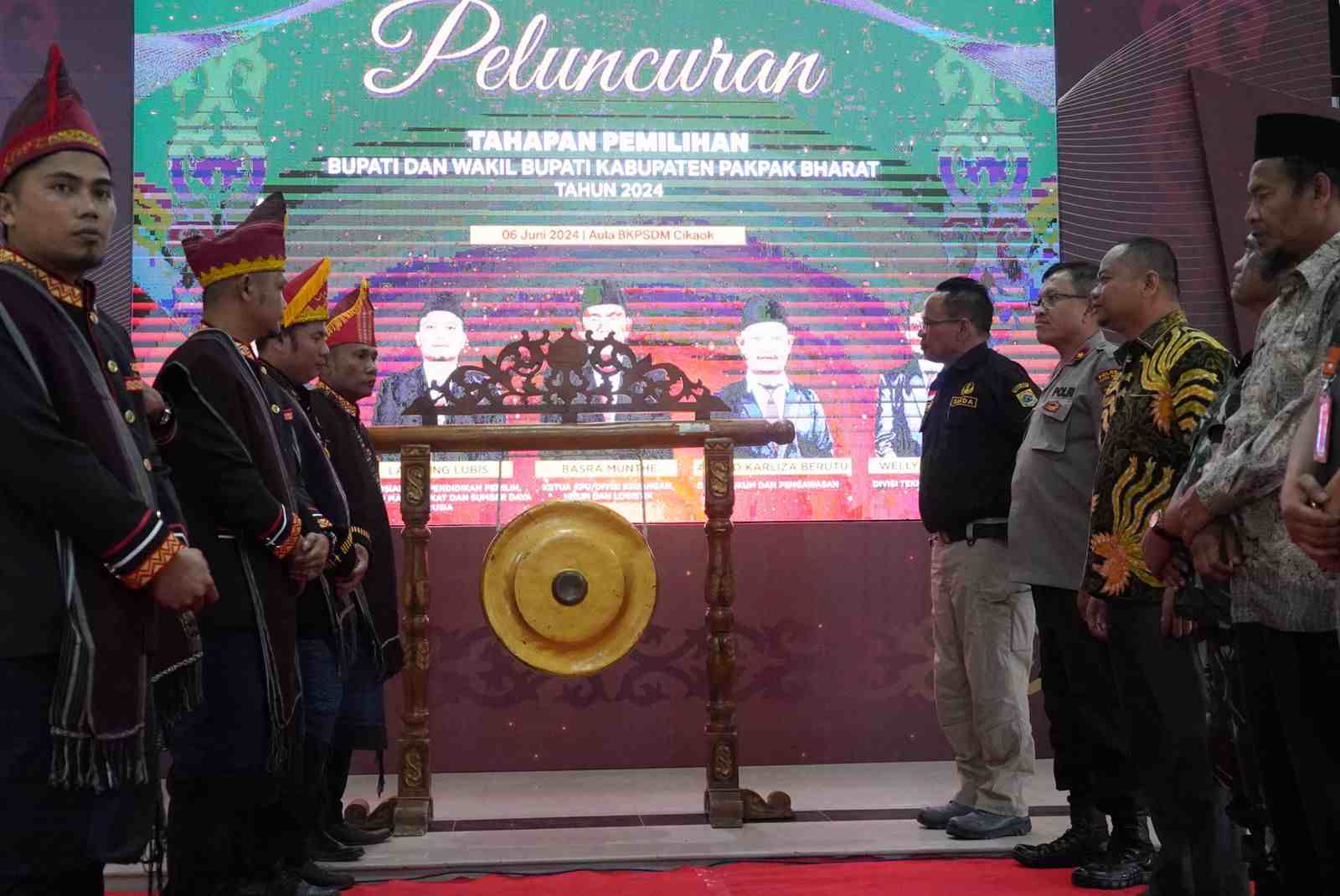 Peluncuran Tahapan Pemilu ini ditandai dengan pemukulan Gong oleh Ketua KPUD Pakpak Bharat, Basra Munthe disaksikan oleh seluruh tamu undangan yang hadir.