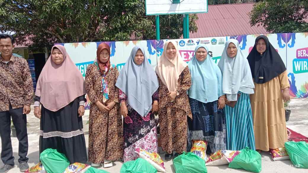 Rahmawati kepala sekolah juga memberikan paket sembako kepada berapa rumah tangga yang tidak mampu yang tinggal seputaran sekolah SMKN penanggalan.