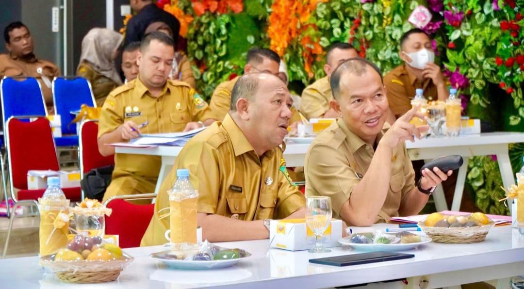 Plt Bupati Langkat H Syah Afandin, SH menghadiri Rapat Koordinasi Pimpinan Kementrian/ Lembaga program Pemberantasan Korupsi Pemerintah Daerah dan Peluncuran Indikator MCP Tahun 2023, melalui zoom dari LCC Kantor Bupati Langkat, Selasa (21/03/2023).