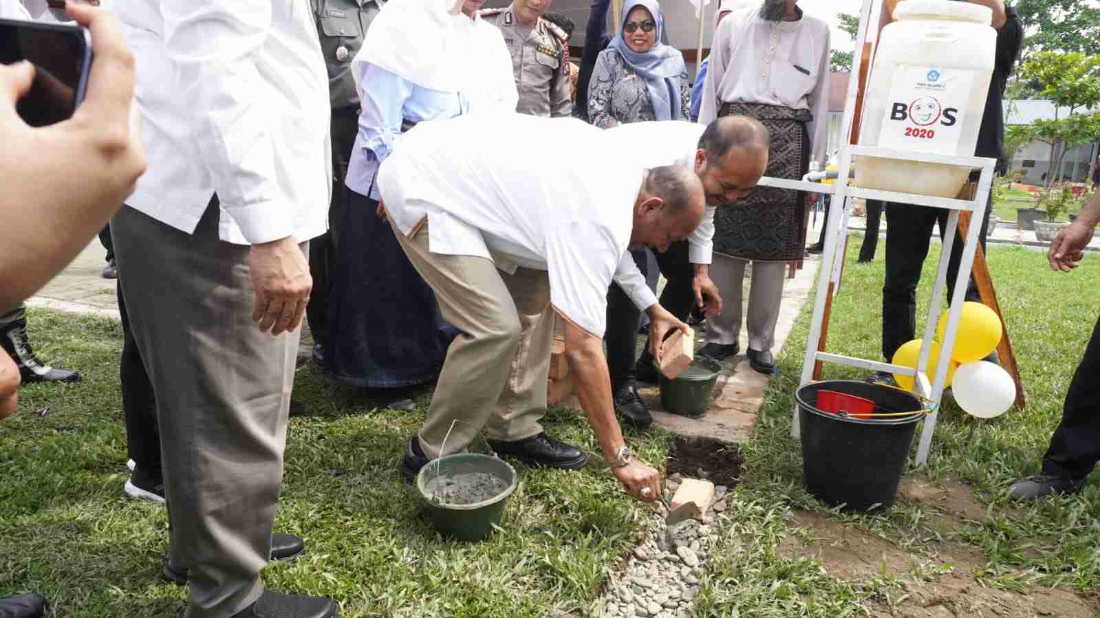 Lensa Mata Langkat – Plt Bupati Langkat H. Syah Afandin, SH menghadiri peletakan batu pertama pembangunan Lapangan Futsal dan Pemberian Beasiswa bagi siswa kurang mampu di SMA Negeri 1 Hinai.