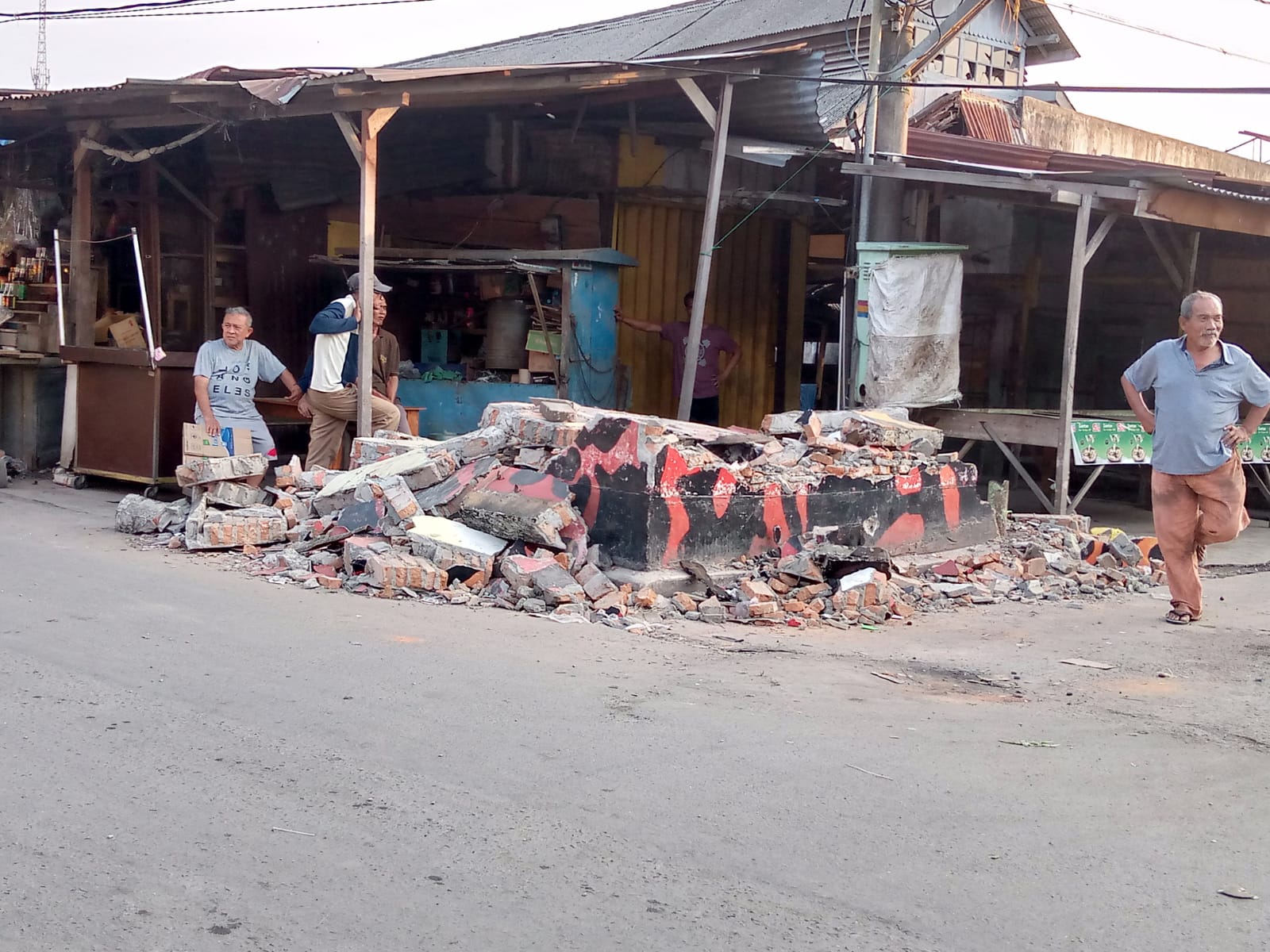 Dedi tidak sendiri, namun diikuti oleh seorang anak kecil. Saat keduanya masih di dalam, bangunan itu pun roboh. Seorang petugas Satpol PP sempat menyelamatkan anak kecil tersebut, sedangkan Dedi mengalami luka sangat serius dan dibawa rumah sakit terdekat.