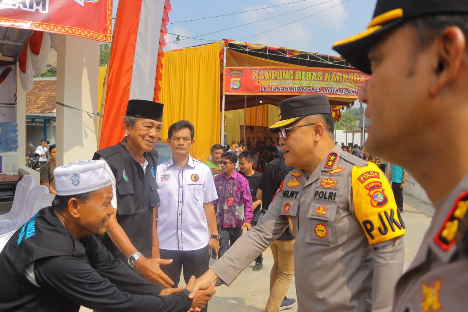 Lensa Mata Lampung || Bertempat di lingkungan Tanah Miring, Kota Alam, Lampung Utara, Kapolda Lampung Irjen Pol Helmi Santika, SH, SIK, MH, melakukan peninjauan Kampung Bebas Narkoba. (Jumat, 08/09/2023). Peninjauan ini dilakukan bertujuan untuk melihat secara langsung Kampung Bebas Narkoba yang dijadikan sebagai Pilot Project dalam mencegah dan memberantas peredaran narkotika.