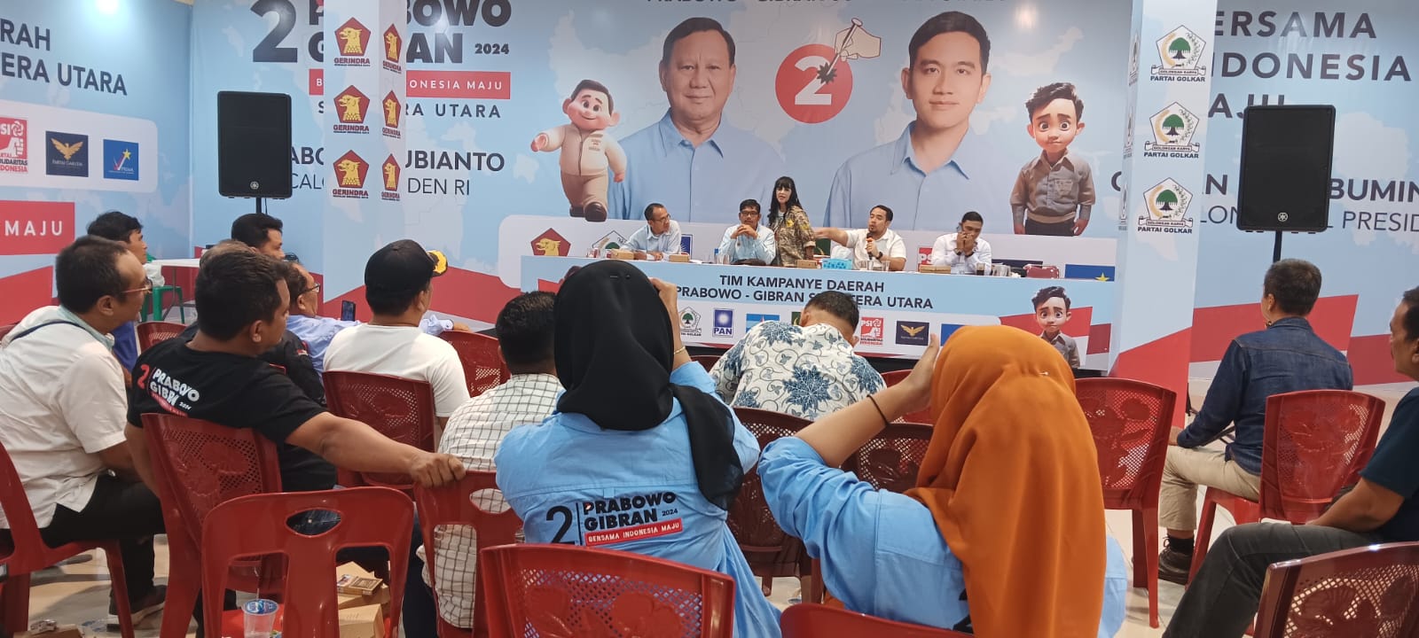 Lensa Mata Medan – Tim Kampanye Daerah (TKD) Provinsi Sumut Capres Prabowo dan Cawapres Gibran Rakabuming Raka mantargetkan kemenangan sebanyak 65 persen.