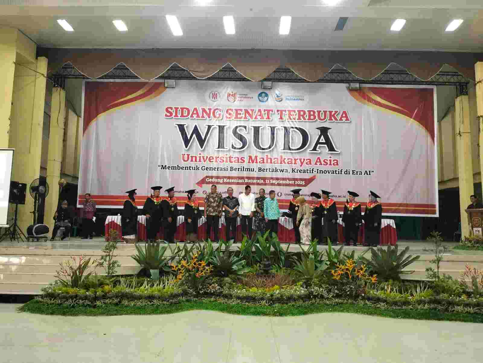 Lensa Mata Baturaja – Universitas Mahakarya Asia menggelar sidang senat terbuka untuk wisuda para mahasiswa dan mahasiswi yang telah menyelesaikan pendidikannya yang dilaksanakan di aula Gedung Kesenian, Kamis (11/9/2025).