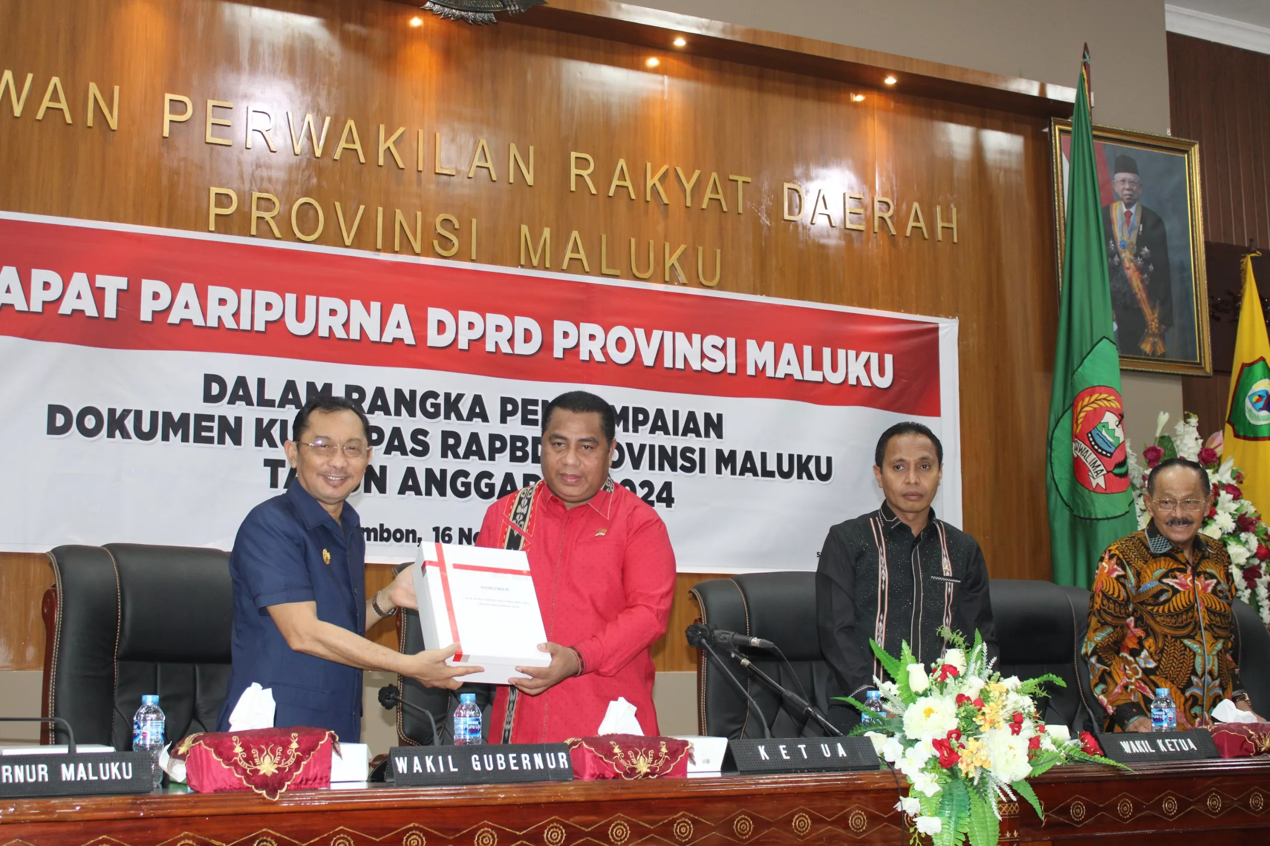 Rapat kemudian dilanjutkan dengan Penyerahan Dokumen KUA serta PPAS dari Wakil Gubernur Maluku kepada Ketua DPRD Provinsi Maluku.