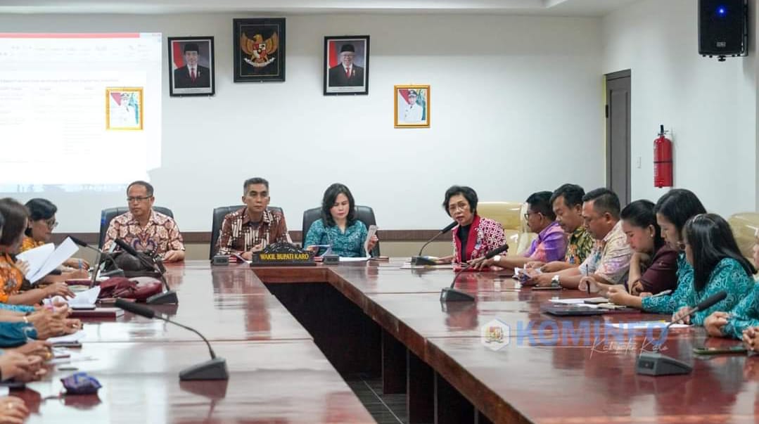 Lensa Mata Karo – Wakil Bupati Karo Theopilus Ginting bersama Ketua TP PKK Kabupaten Karo Ny.Vera Rika Theopilus Ginting dan anggota PKK serta perangkat daerah Kabupaten Karo hadir dalam Rapat Koordinasi terkait desa Percontohan Program Pokok PKK di Kabupaten Karo tahun 2024 yang dilaksanakan di ruang rapat Bupati Karo, Kamis (21/03/2024)