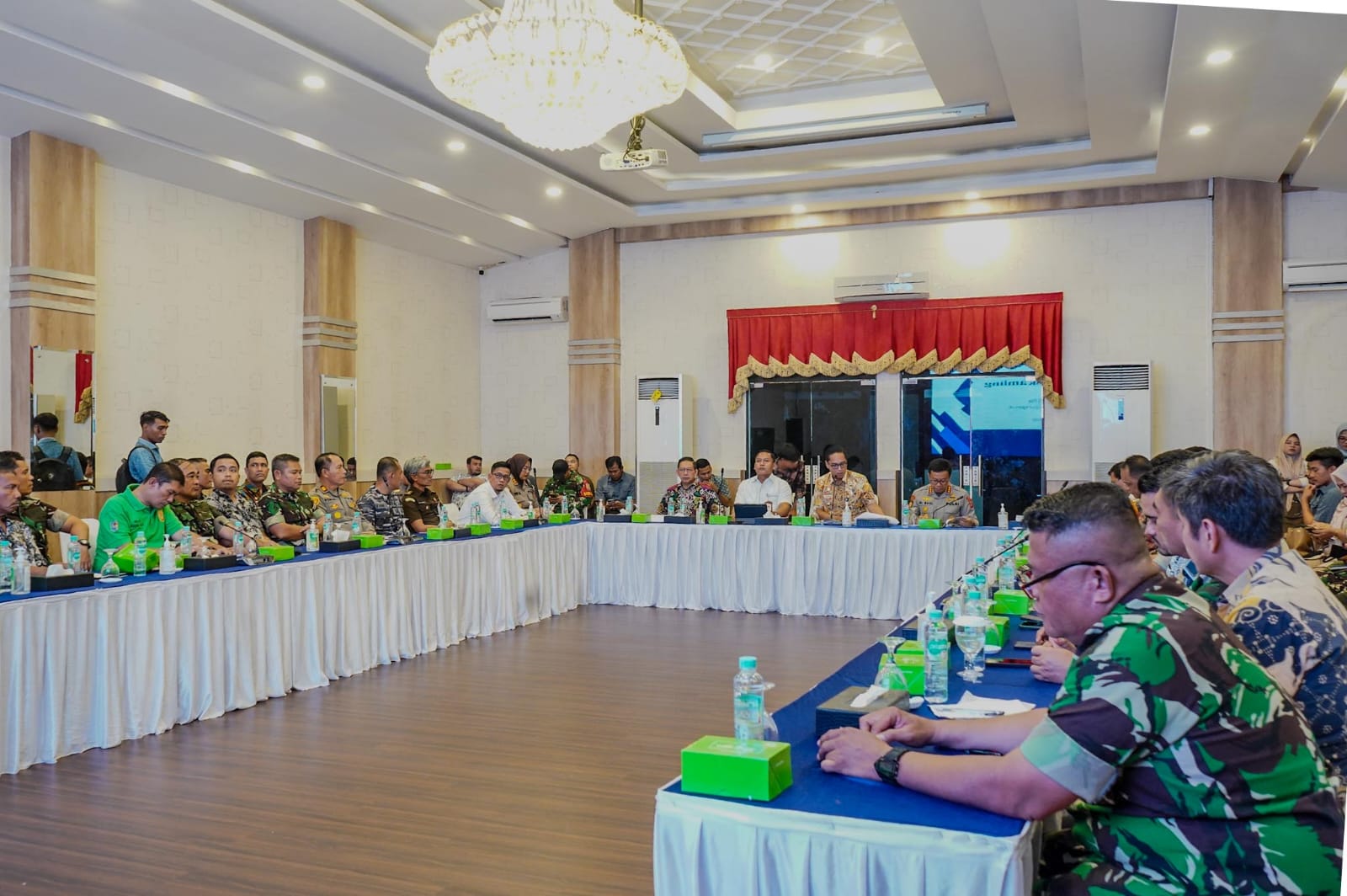Rapat dihadiri unsur Forkopimda Kota Medan, Staf Khusus Bidang Keamanan dan Hukum Kemendagri Irjen. Pol. Wahyu Bintono Hari Bawono, pimpinan OPD, serta seluruh camat.