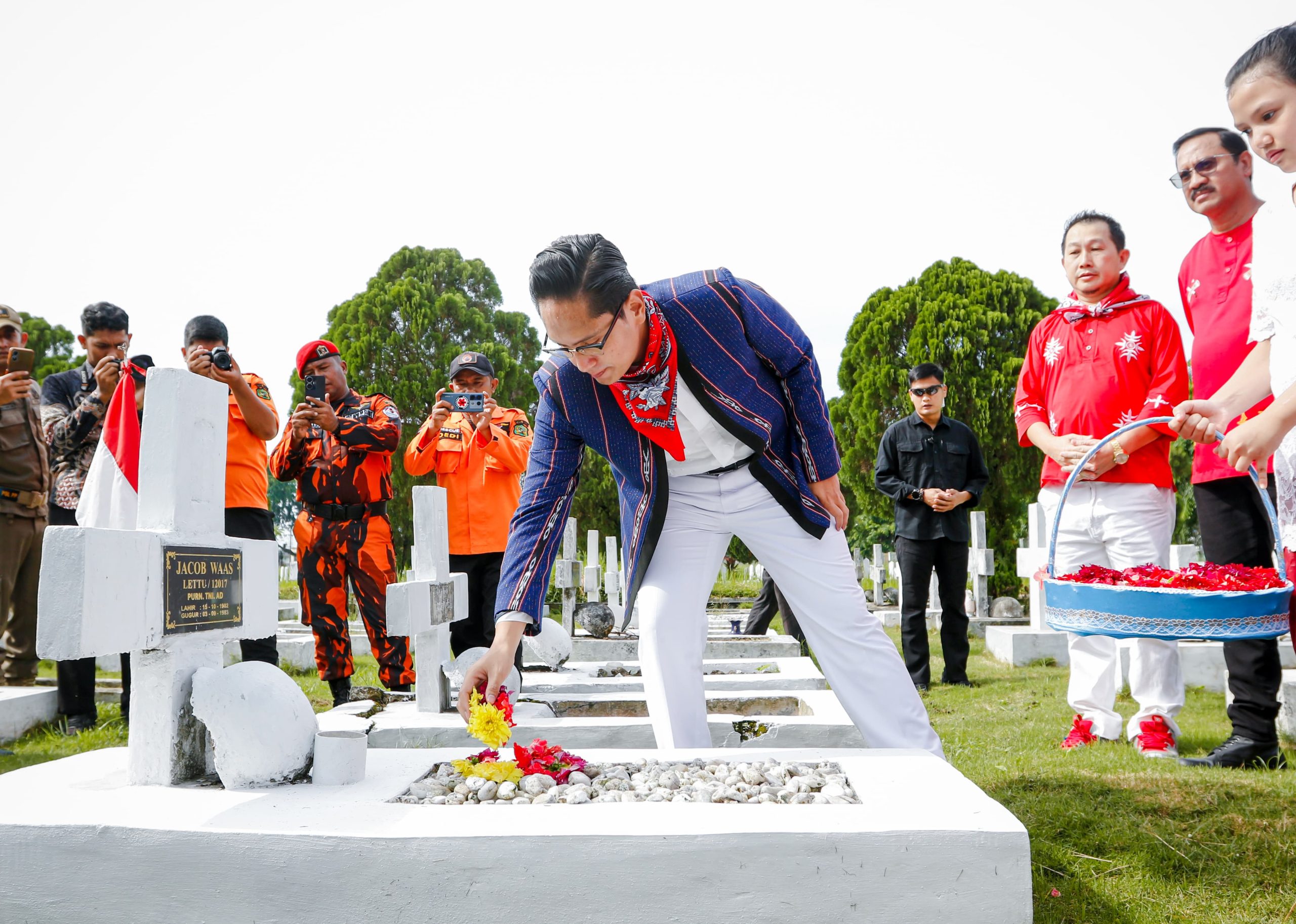 Lensa Mata Medan – Menggunakan pakaian khas Maluku, Baju Baniang dengan Kabaya Dansa yang dilengkapi Kain Berang, Wali Kota Medan Rico Tri Putra Bayu Waas memimpin upacara ziarah rombongan dalam rangka peringatan Hari Pahlawan Nasional Kapitan Pattimura ke -208 tingkat Kota Medan di makam Pahlawan, jalan Sisingamangaraja, Kamis (15/3/25).