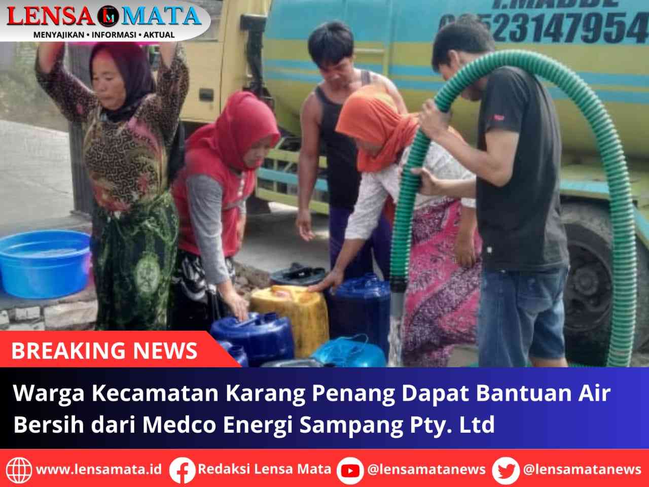 Lensa Mata Sampang – Medco Energi Sampang Pty. Ltd melalui Masyarakat Relawan Indonesia Sampang Madura menyalurkan bantuan air bersih kepada warga di tujuh Kecamatan, Kabupaten Sampang. Warga pun antusias atas bantuan air bersih di wilayah mereka yang mengalami kekeringan.